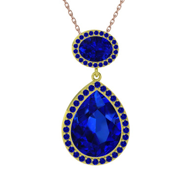 Lab safir 18 ayar altın kolye (40 cm gümüş rolo zincir)