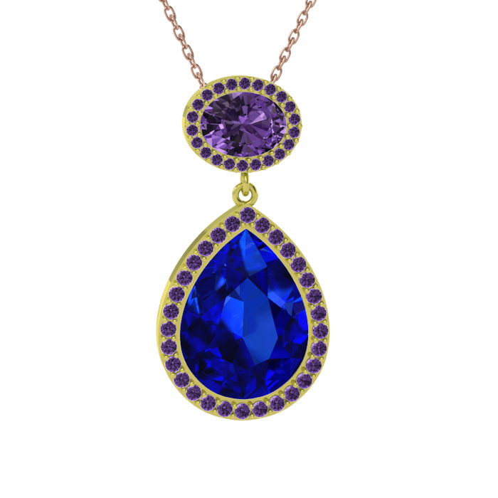 Lab safir ve ametist 14 ayar altın kolye (40 cm rose altın rolo zincir)