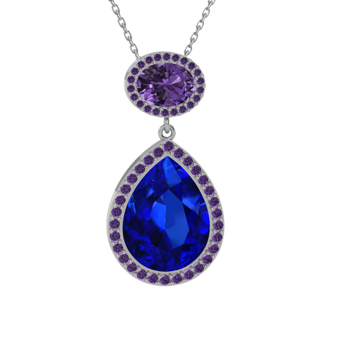 Lab safir ve ametist 18 ayar beyaz altın kolye (40 cm beyaz altın rolo zincir)