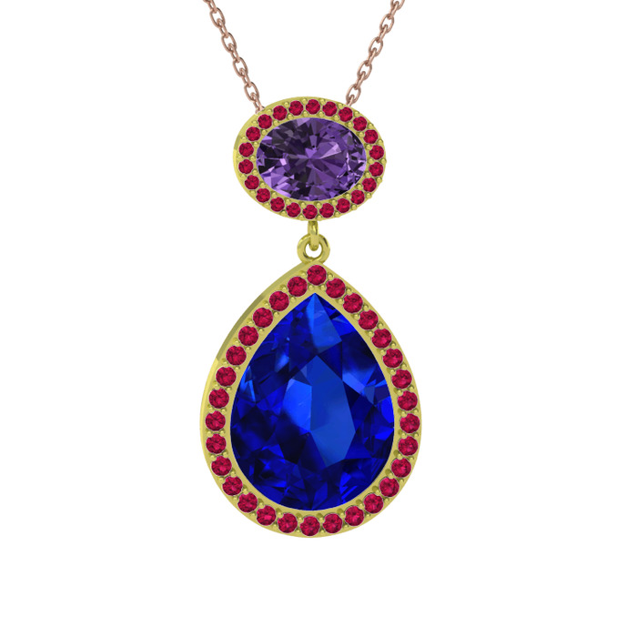 Lab safir, ametist ve rodolit garnet 18 ayar altın kolye (40 cm rose altın rolo zincir)