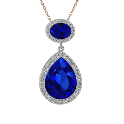 Lab safir ve beyaz zirkon 14 ayar beyaz altın kolye (40 cm rose altın rolo zincir)