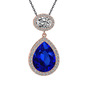 Lab safir ve beyaz zirkon 8 ayar rose altın kolye (40 cm gümüş rolo zincir)