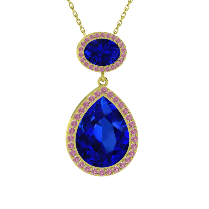 Lab safir ve pembe kuvars 18 ayar altın kolye (40 cm altın rolo zincir)