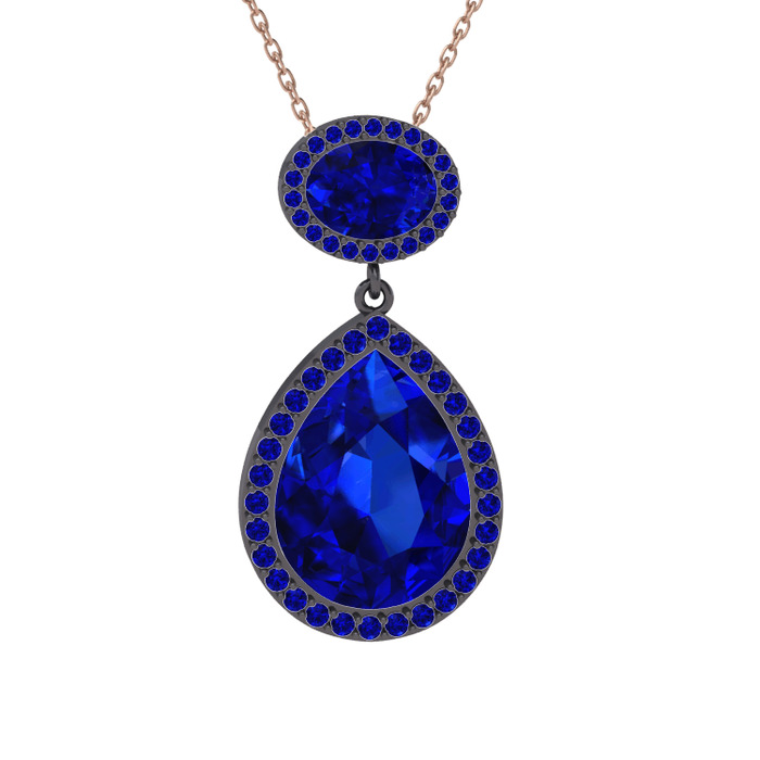 Lab safir 925 ayar siyah rodyum kaplama gümüş kolye (40 cm gümüş rolo zincir)