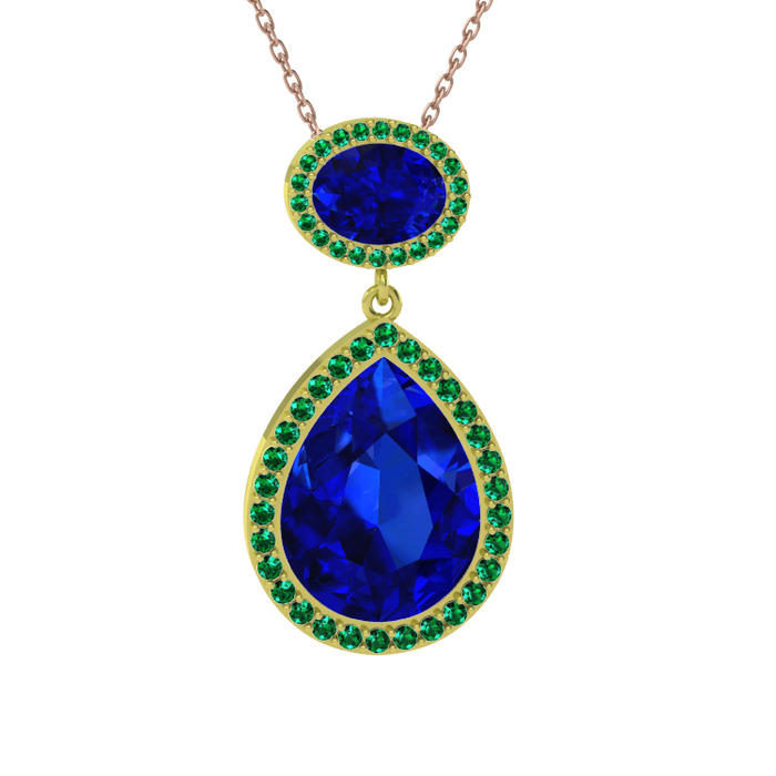 Lab safir ve yeşil kuvars 18 ayar altın kolye (40 cm rose altın rolo zincir)