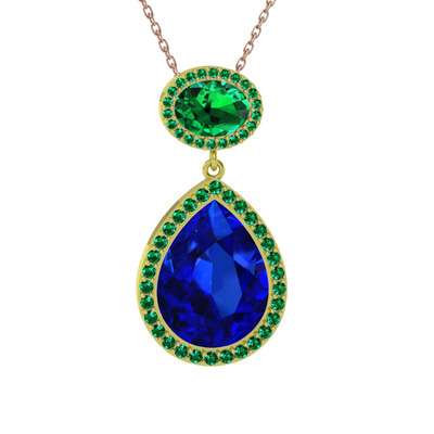 Lab safir ve yeşil kuvars 18 ayar altın kolye (40 cm rose altın rolo zincir)