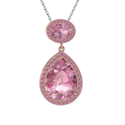 Pembe kuvars 18 ayar rose altın kolye (40 cm gümüş rolo zincir)
