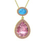 Pembe kuvars ve akuamarin 8 ayar altın kolye (40 cm altın rolo zincir)
