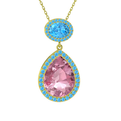 Pembe kuvars ve akuamarin 925 ayar altın kaplama gümüş kolye (40 cm gümüş rolo zincir)
