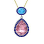 Pembe kuvars, akuamarin ve lab safir 925 ayar gümüş kolye (40 cm altın rolo zincir)