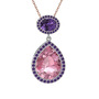 Pembe kuvars ve ametist 14 ayar beyaz altın kolye (40 cm rose altın rolo zincir)