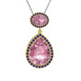 Pembe kuvars ve ametist 18 ayar altın kolye (40 cm beyaz altın rolo zincir)