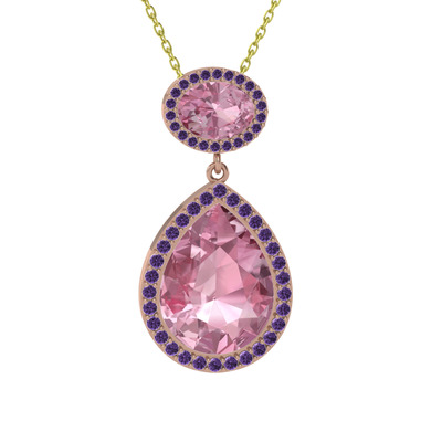 Pembe kuvars ve ametist 18 ayar rose altın kolye (40 cm altın rolo zincir)