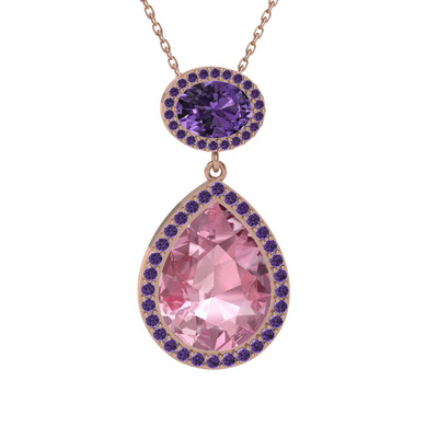 Pembe kuvars ve ametist 8 ayar rose altın kolye (40 cm rose altın rolo zincir)