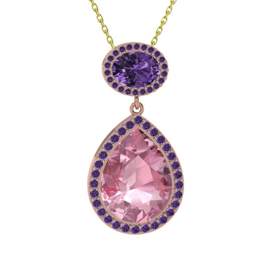 Pembe kuvars ve ametist 925 ayar rose altın kaplama gümüş kolye (40 cm altın rolo zincir)
