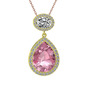 Pembe kuvars ve beyaz zirkon 14 ayar altın kolye (40 cm rose altın rolo zincir)