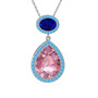 Pembe kuvars, lab safir ve akuamarin 925 ayar gümüş kolye (40 cm gümüş rolo zincir)