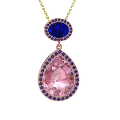 Pembe kuvars, lab safir ve ametist 925 ayar rose altın kaplama gümüş kolye (40 cm altın rolo zincir)