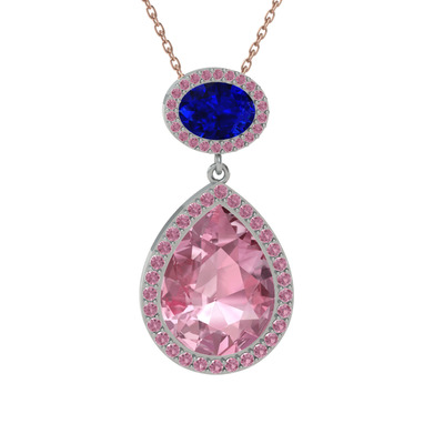 Pembe kuvars ve lab safir 925 ayar gümüş kolye (40 cm rose altın rolo zincir)