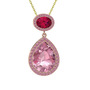 Pembe kuvars ve rodolit garnet 14 ayar rose altın kolye (40 cm altın rolo zincir)