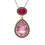 Pembe kuvars, rodolit garnet ve ametist 925 ayar altın kaplama gümüş kolye (40 cm gümüş rolo zincir)