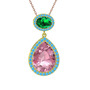Pembe kuvars, yeşil kuvars ve akuamarin 8 ayar altın kolye (40 cm rose altın rolo zincir)