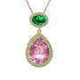 Pembe kuvars, yeşil kuvars ve beyaz zirkon 14 ayar altın kolye (40 cm rose altın rolo zincir)