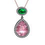 Pembe kuvars, yeşil kuvars ve beyaz zirkon 925 ayar siyah rodyum kaplama gümüş kolye (40 cm gümüş rolo zincir)