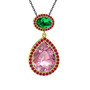 Pembe kuvars, yeşil kuvars ve rodolit garnet 925 ayar altın kaplama gümüş kolye (40 cm gümüş rolo zincir)