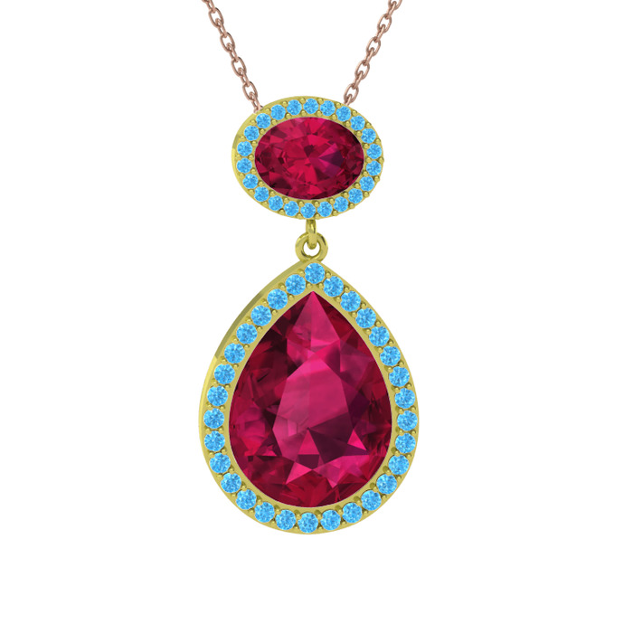 Rodolit garnet ve akuamarin 14 ayar altın kolye (40 cm rose altın rolo zincir)