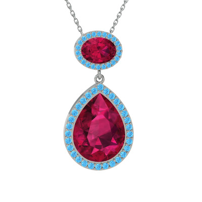 Rodolit garnet ve akuamarin 14 ayar beyaz altın kolye (40 cm beyaz altın rolo zincir)