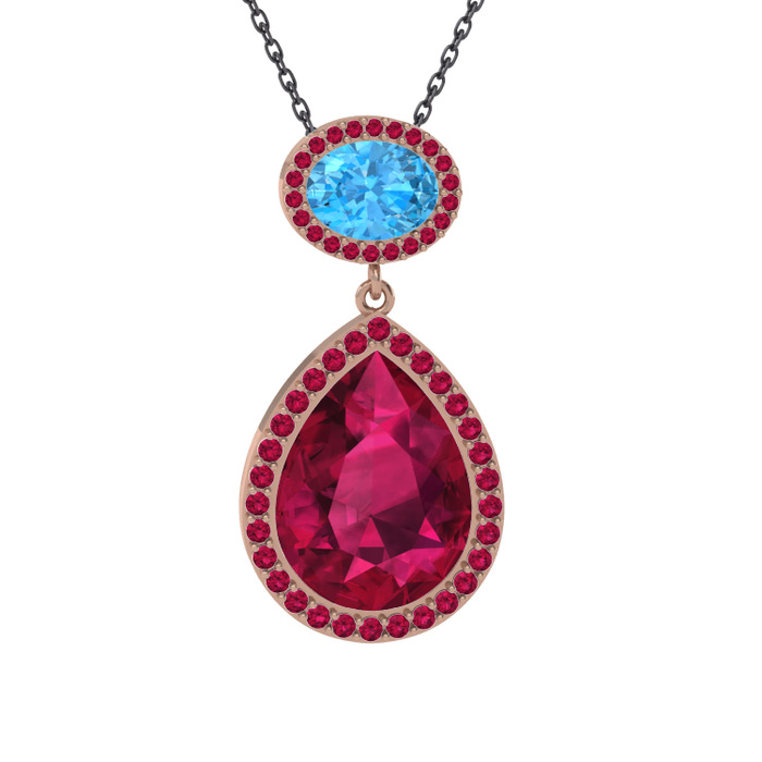 Rodolit garnet ve akuamarin 14 ayar rose altın kolye (40 cm gümüş rolo zincir)