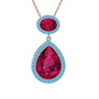 Rodolit garnet ve akuamarin 18 ayar beyaz altın kolye (40 cm rose altın rolo zincir)
