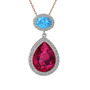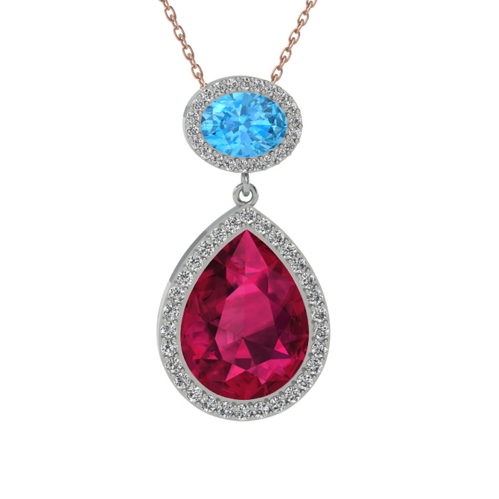 Rodolit garnet, akuamarin ve beyaz zirkon 18 ayar beyaz altın kolye (40 cm rose altın rolo zincir)