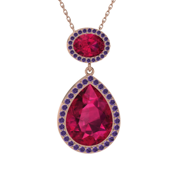 Rodolit garnet ve ametist 18 ayar rose altın kolye (40 cm rose altın rolo zincir)