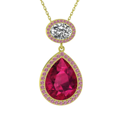 Rodolit garnet, beyaz zirkon ve pembe kuvars 18 ayar altın kolye (40 cm altın rolo zincir)