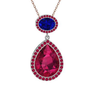 Rodolit garnet ve lab safir 18 ayar beyaz altın kolye (40 cm rose altın rolo zincir)