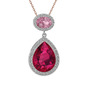 Rodolit garnet, pembe kuvars ve beyaz zirkon 14 ayar beyaz altın kolye (40 cm rose altın rolo zincir)