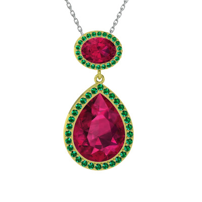 Rodolit garnet ve yeşil kuvars 14 ayar altın kolye (40 cm beyaz altın rolo zincir)