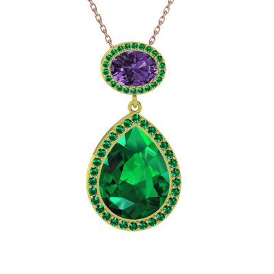 Yeşil kuvars ve ametist 18 ayar altın kolye (40 cm rose altın rolo zincir)