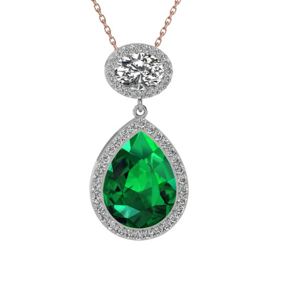 Yeşil kuvars ve beyaz zirkon 18 ayar beyaz altın kolye (40 cm rose altın rolo zincir)