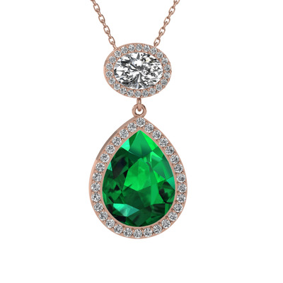 Yeşil kuvars ve beyaz zirkon 8 ayar rose altın kolye (40 cm rose altın rolo zincir)