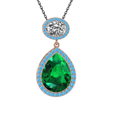Yeşil kuvars, beyaz zirkon ve akuamarin 8 ayar rose altın kolye (40 cm gümüş rolo zincir)
