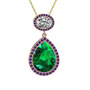 Yeşil kuvars, beyaz zirkon ve ametist 925 ayar rose altın kaplama gümüş kolye (40 cm gümüş rolo zincir)