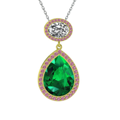 Yeşil kuvars, beyaz zirkon ve pembe kuvars 8 ayar altın kolye (40 cm beyaz altın rolo zincir)