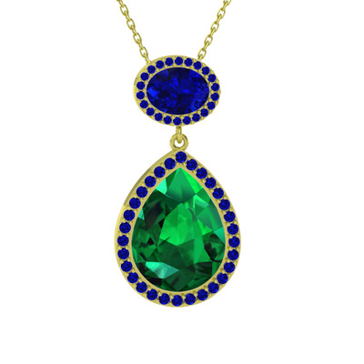 Yeşil kuvars ve lab safir 8 ayar altın kolye (40 cm altın rolo zincir)