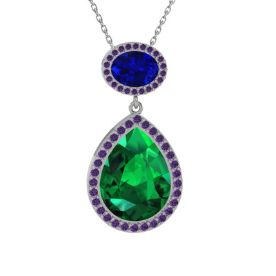 Yeşil kuvars, lab safir ve ametist 18 ayar beyaz altın kolye (40 cm beyaz altın rolo zincir)
