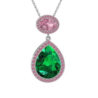 Yeşil kuvars ve pembe kuvars 18 ayar beyaz altın kolye (40 cm gümüş rolo zincir)