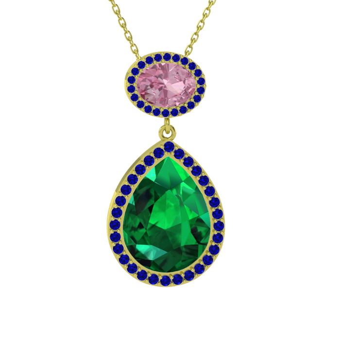 Yeşil kuvars, pembe kuvars ve lab safir 8 ayar altın kolye (40 cm altın rolo zincir)