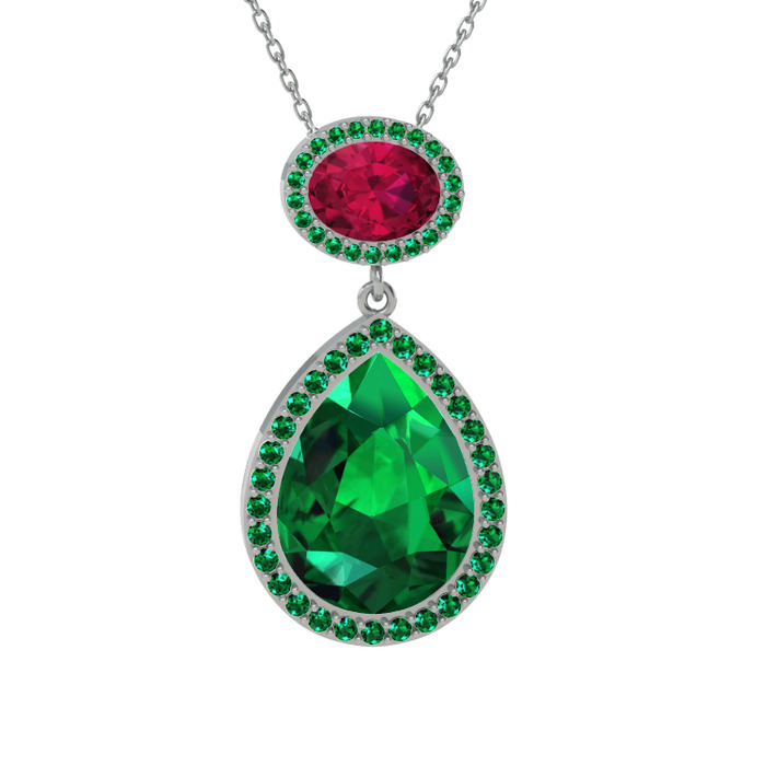 Yeşil kuvars ve rodolit garnet 14 ayar beyaz altın kolye (40 cm beyaz altın rolo zincir)